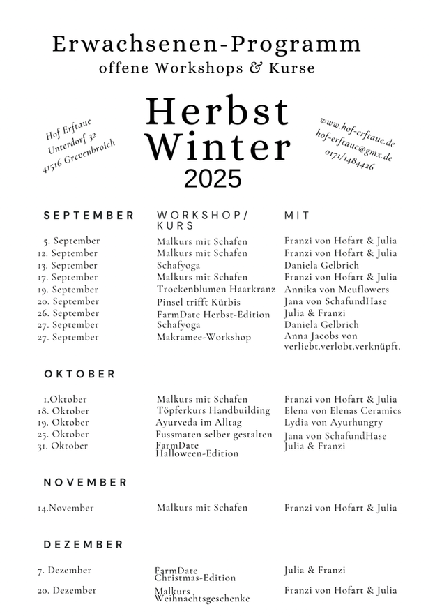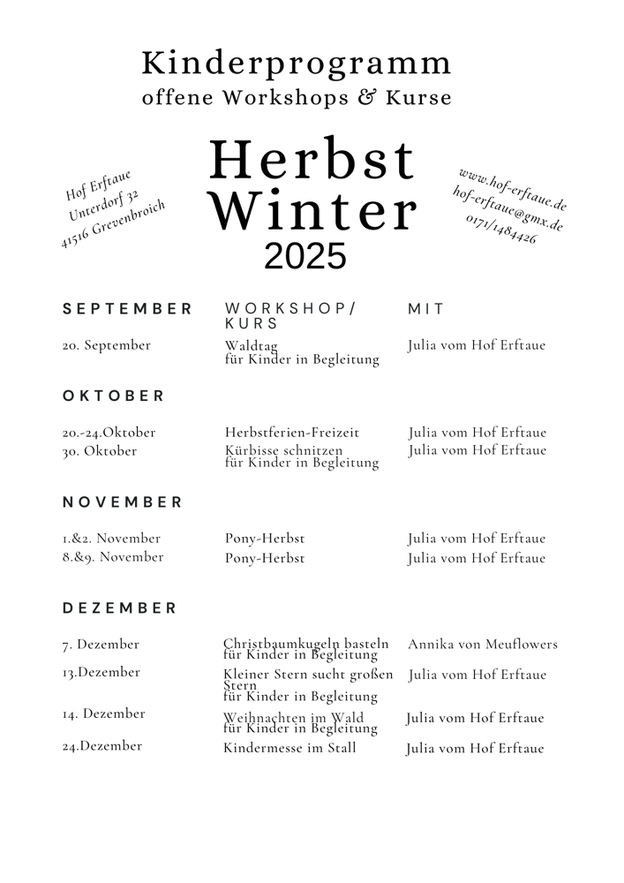 Unten findest du unser Herbst-/Winter-Programm 2025 für Kinder und Erwachsene.