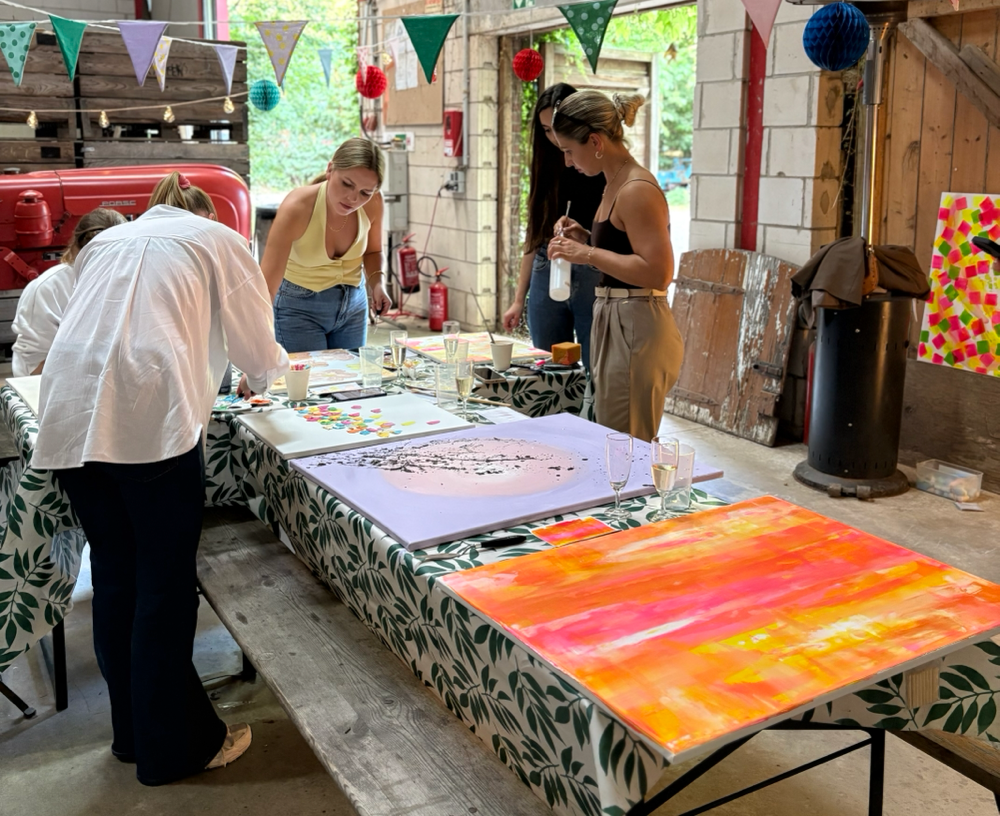 Erlebe mit der Künstlerin Franziska Müller einen bunten Acrylmalerei-Workshop auf unserem wunderschönen Hof Erftaue.