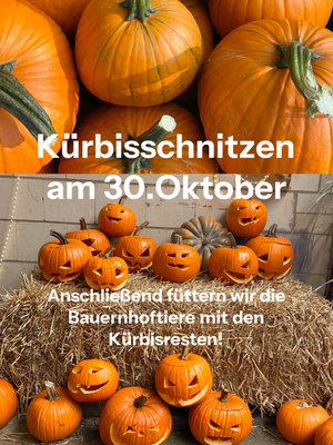 Hof Erftaue. Wir schnitzen von 15:30 bis 17:30 Uhr Halloween-Kürbisse. Eure Kunstwerke könnt ihr im Anschluss mit nach Hause nehmen.